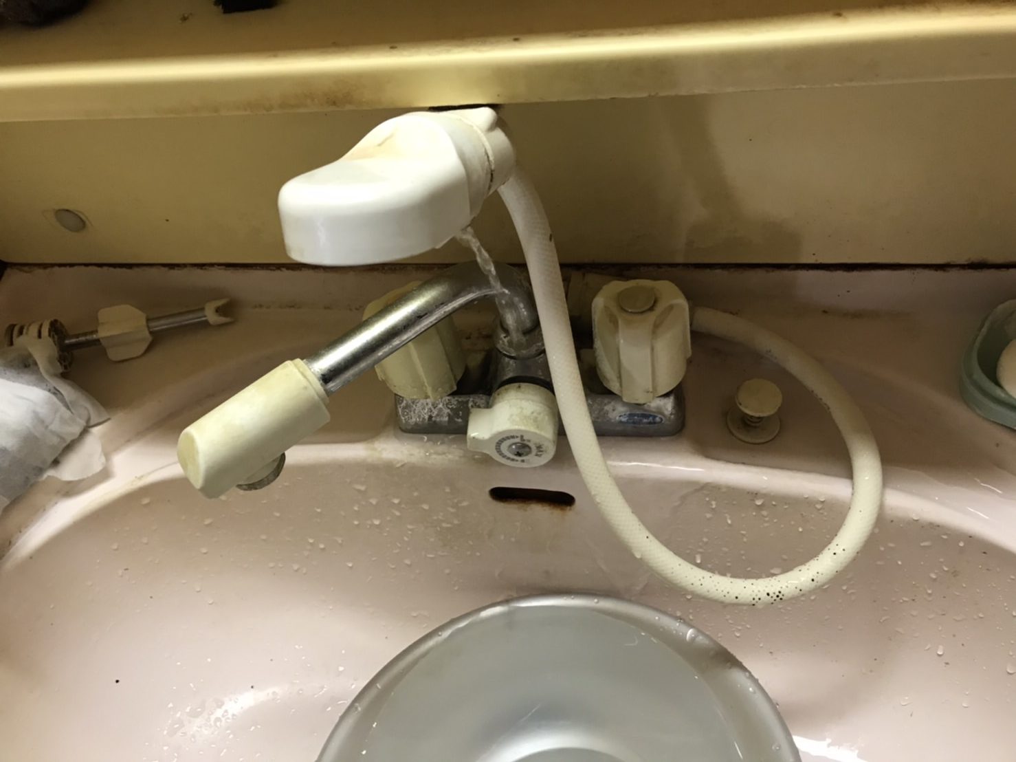 もはや洗面台ごと交換したほうがいいくらい劣化していましたが、強い要望で蛇口のみの交換で依頼を受けました。