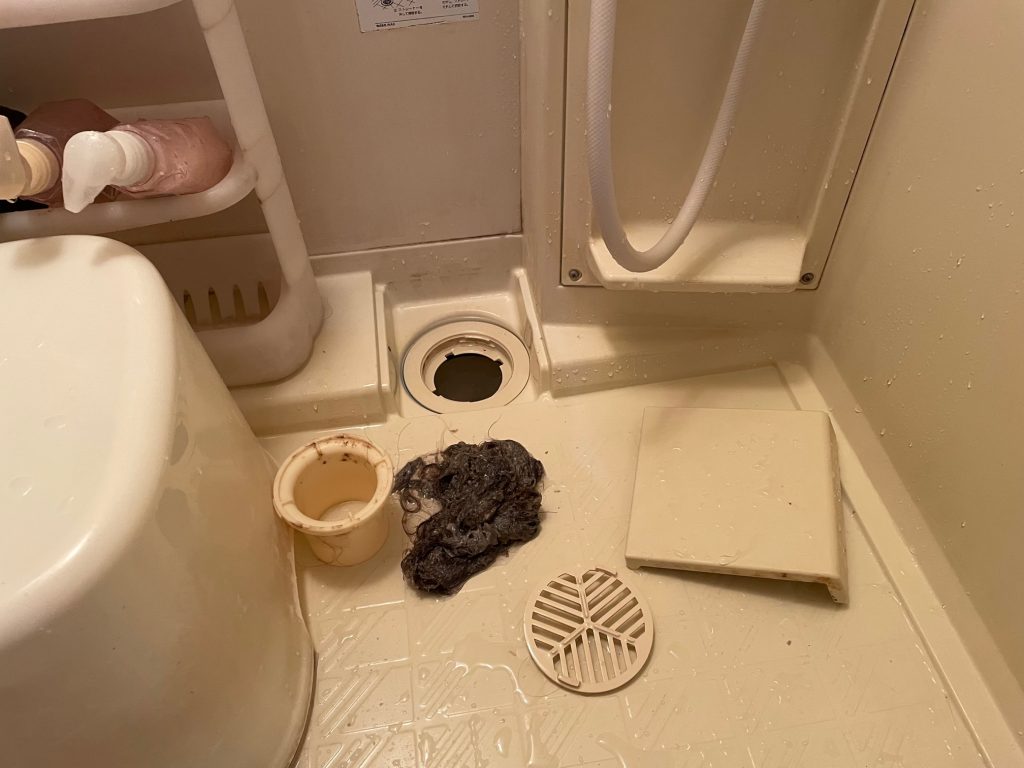 本日は、管理会社様からの依頼で浴室の排水詰まりでお伺いしました。