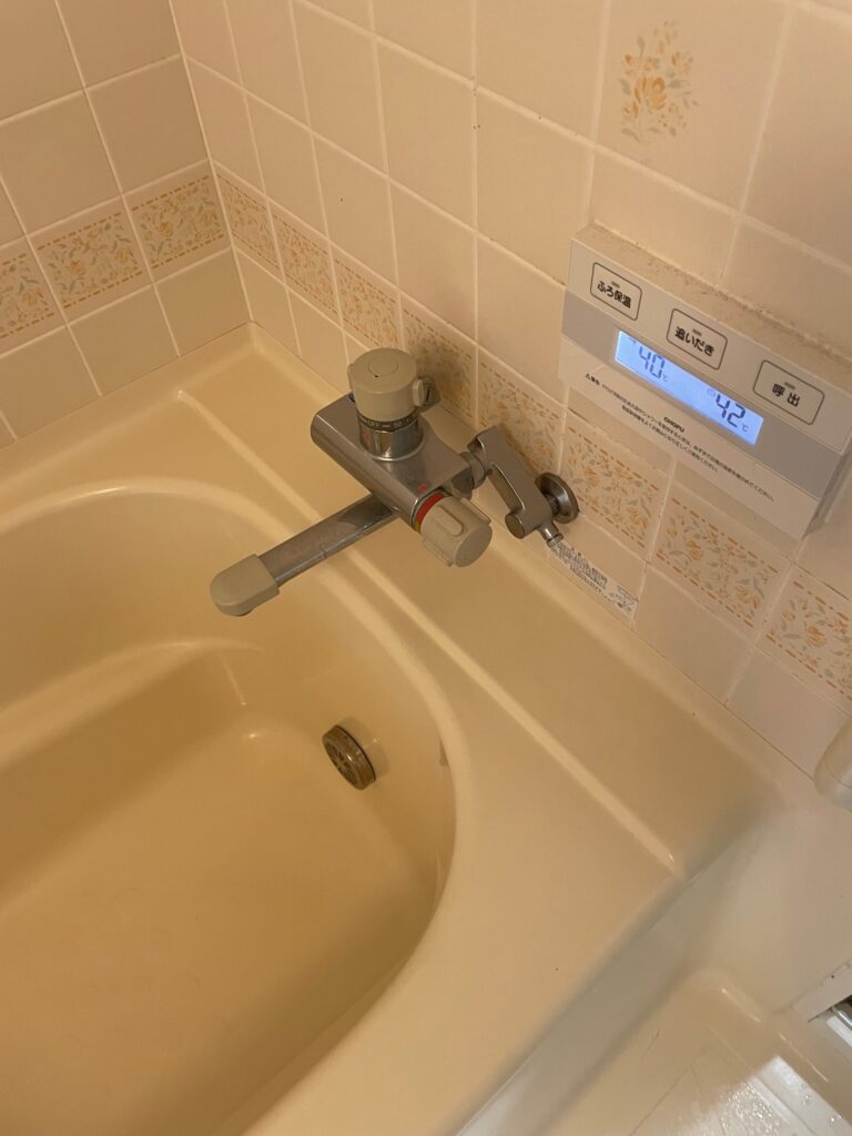 定量止水機能はいらないとのことでサーモ付水栓へ本体交換をさせて頂きました。
