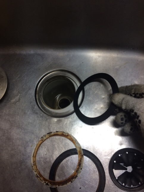 原因は至ってシンプルで、排水トラップを固定するのに挟まっているパッキンの劣化でした。