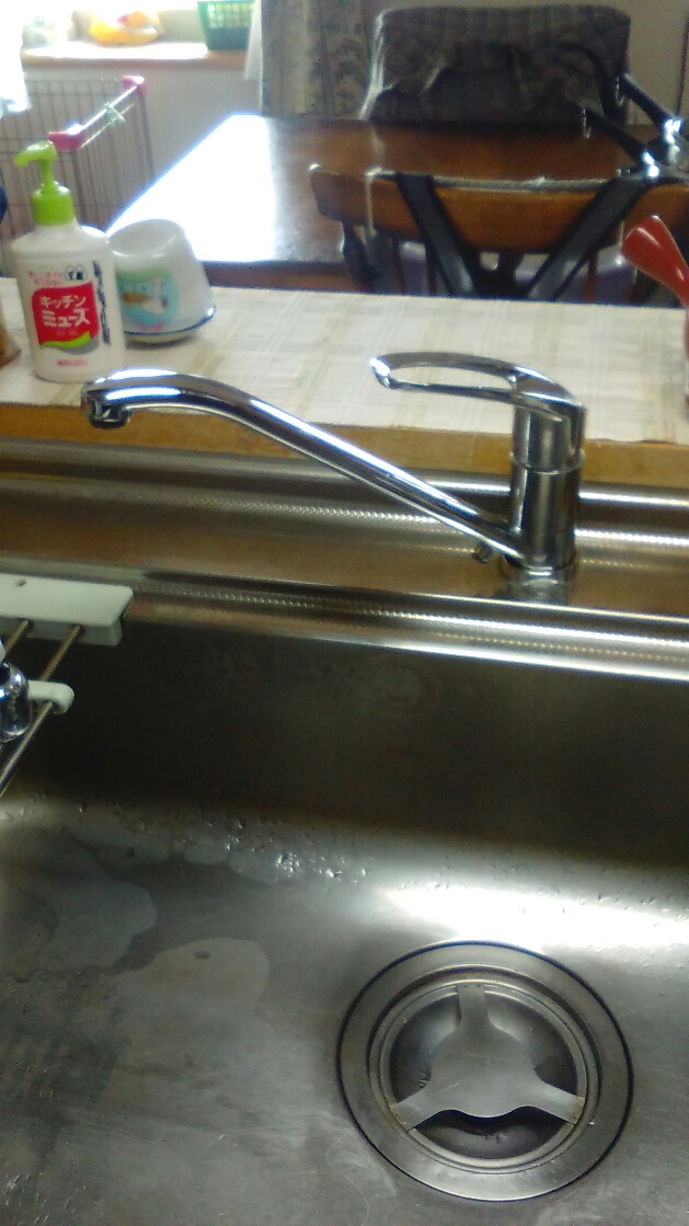 今日は以前、浴室の蛇口の修理の依頼を受けたお客様から今度は台所の蛇口から水が漏れて来たので見て欲しいとの依頼で行ってきました。拝見すると蛇口の本体からレバーを開くとジワ~と漏れてきます。交換は初めてらしくマンションで下の階に水漏れしたら不安なので直ぐに交換して欲しいという事で交換になりました。ありがとうございました。