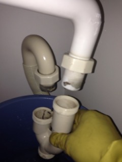 洗面台の下のトラップ部分を見てみると、ゴミや髪の毛がまとまって詰まっていました。