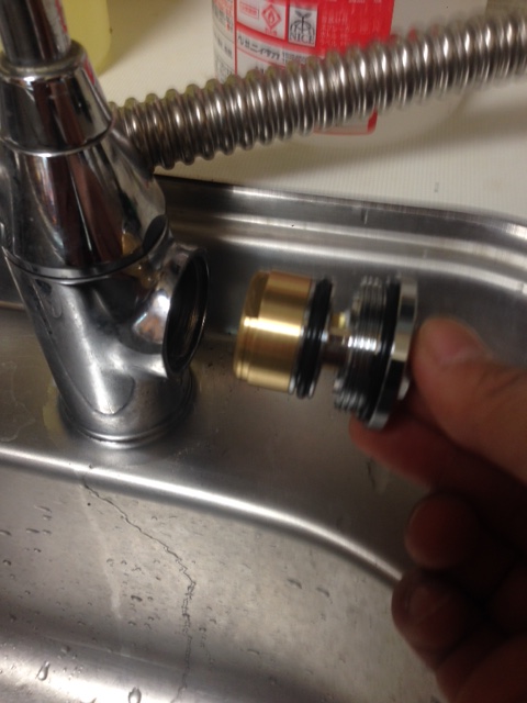 水漏れ場所は蛇口の根元で、どうやら中に入っているカートリッジの不具合で隙間から漏れてきているようでした。