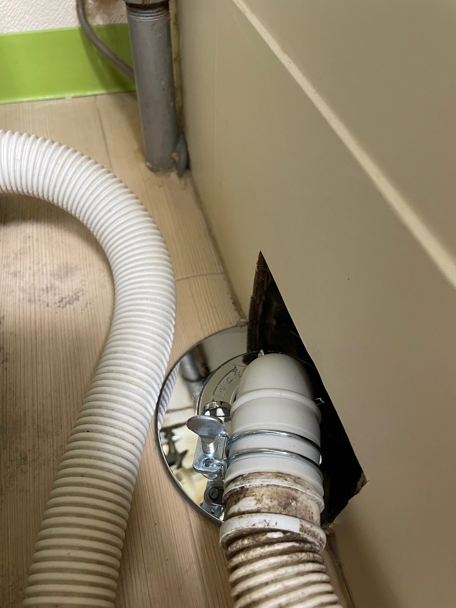 上階の洗濯機を使用した際に漏れてきたみたいで、洗濯排水トラップの不具合と思われます。