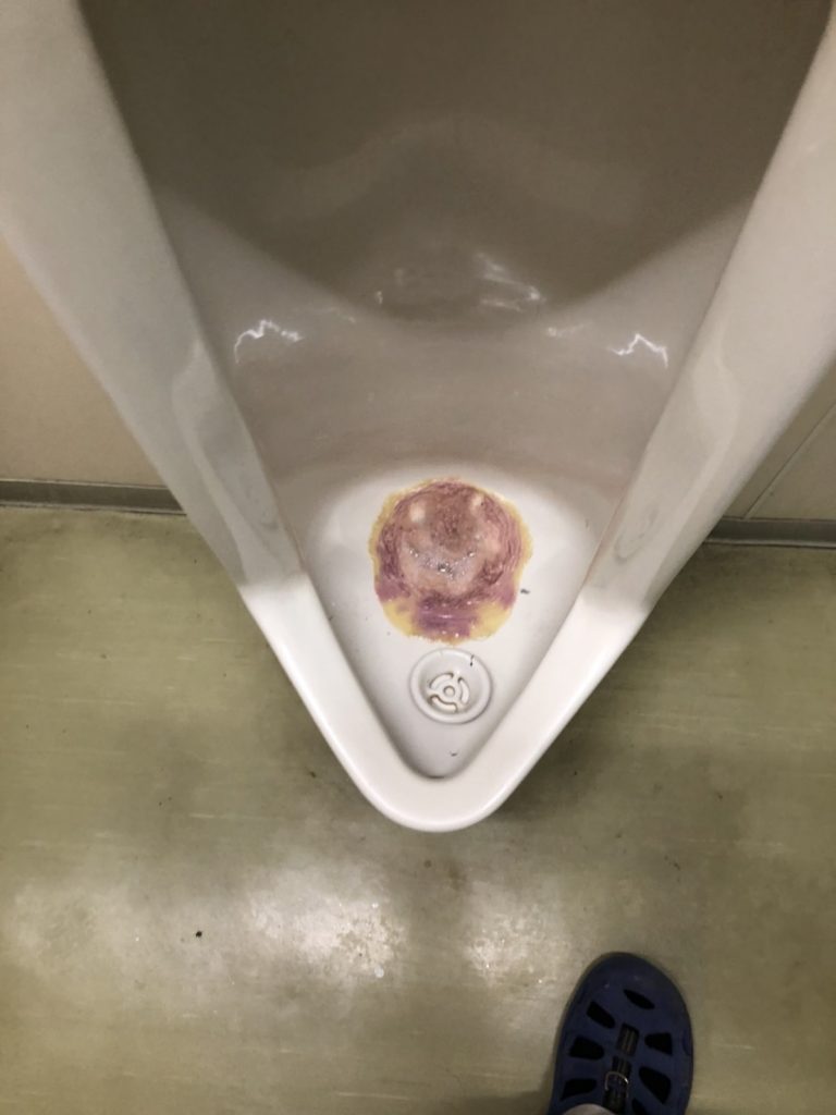 詰まっているのは小便器用のもので、かなり長い時間をかけないと流れていかない状態でした。