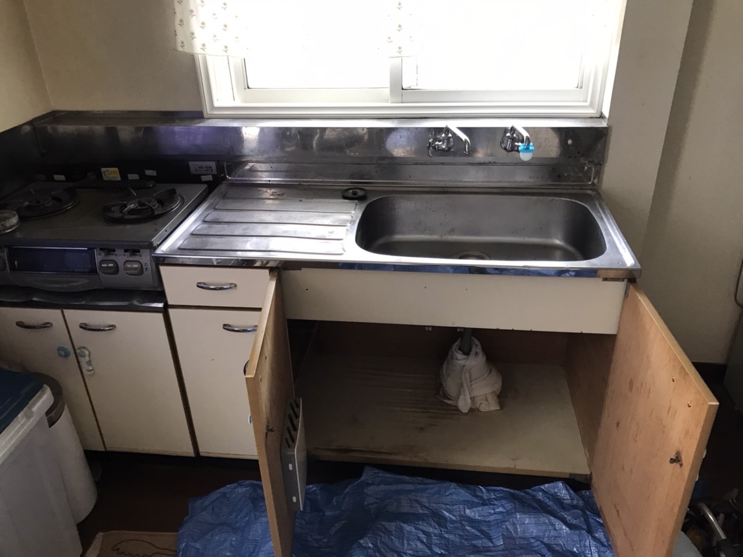 補修が効かないとなると台所を新しくするしかなく、同じ型でサイズのものをご用意して交換作業を行いました。