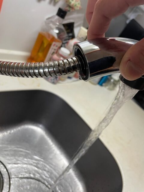 台所収納内にあるホースから水が漏れてきているとのこと。
