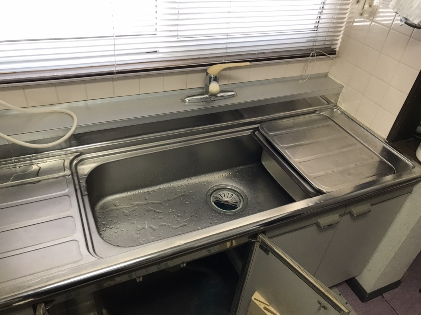 シンクに点検口などはなかったので、一旦台所を引き出して交換作業を行いました。