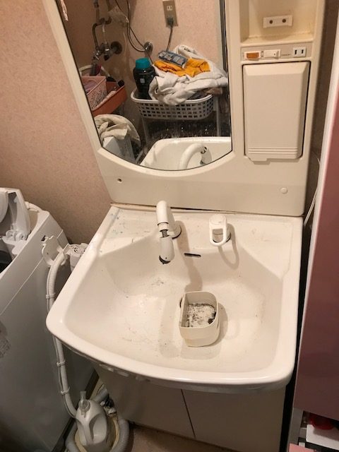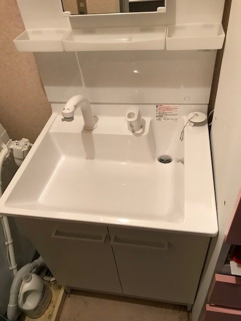 一般的な洗面台の大きさで種類は問わないとのことだったので、サイズの合う洗面台で交換作業を行いました。