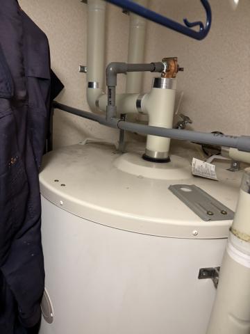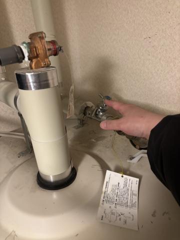 電気温水器1次側止水して電気温水器の水を抜き電源落として応急対応