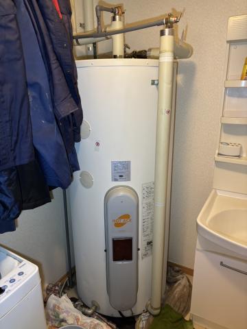 管理会社様より、北区のお客様宅の電気温水器本体底より水漏れのご依頼