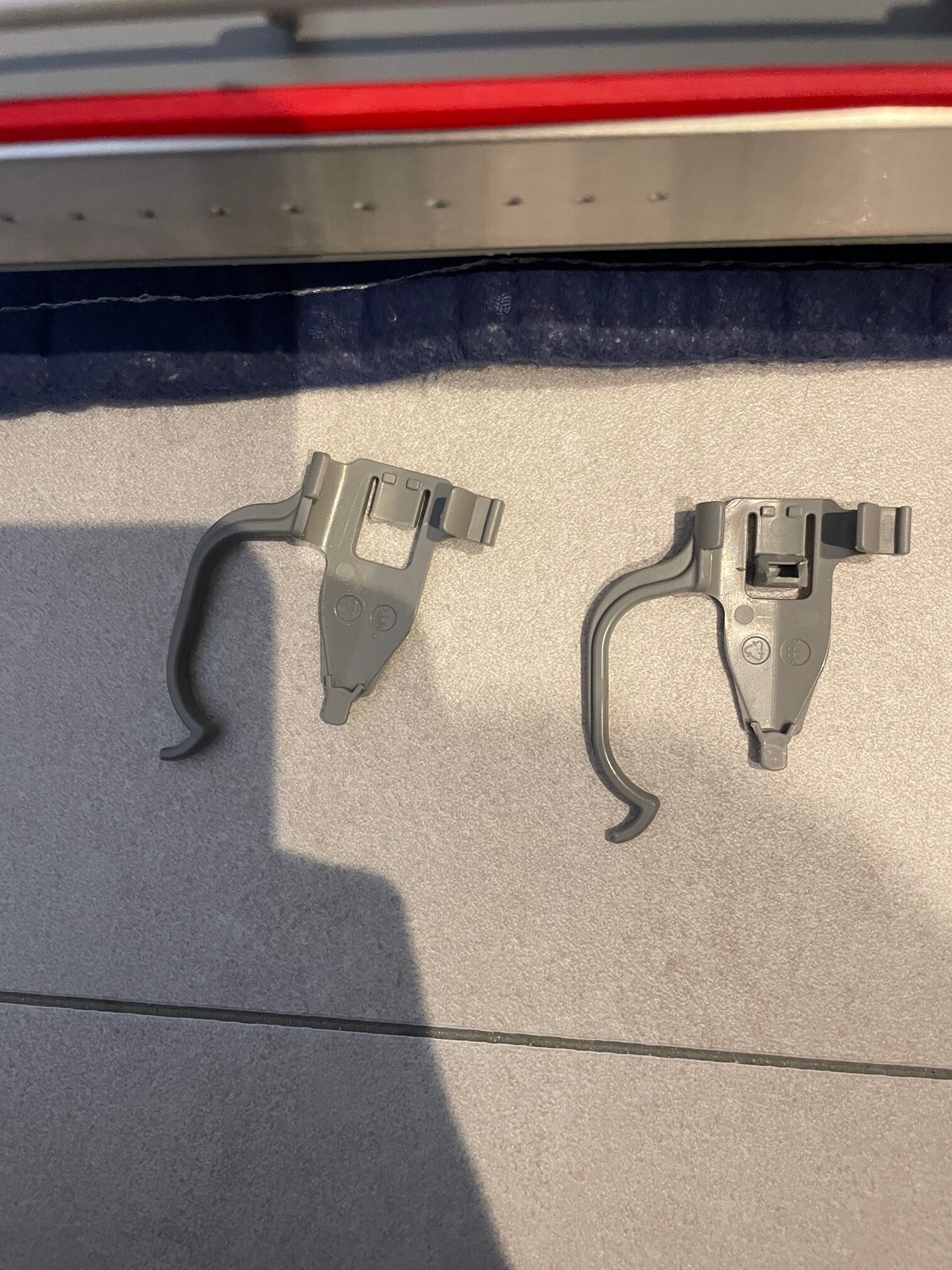 エンドクリップと呼ばれる部品が破損しており落ちてきてしまう状態でした。