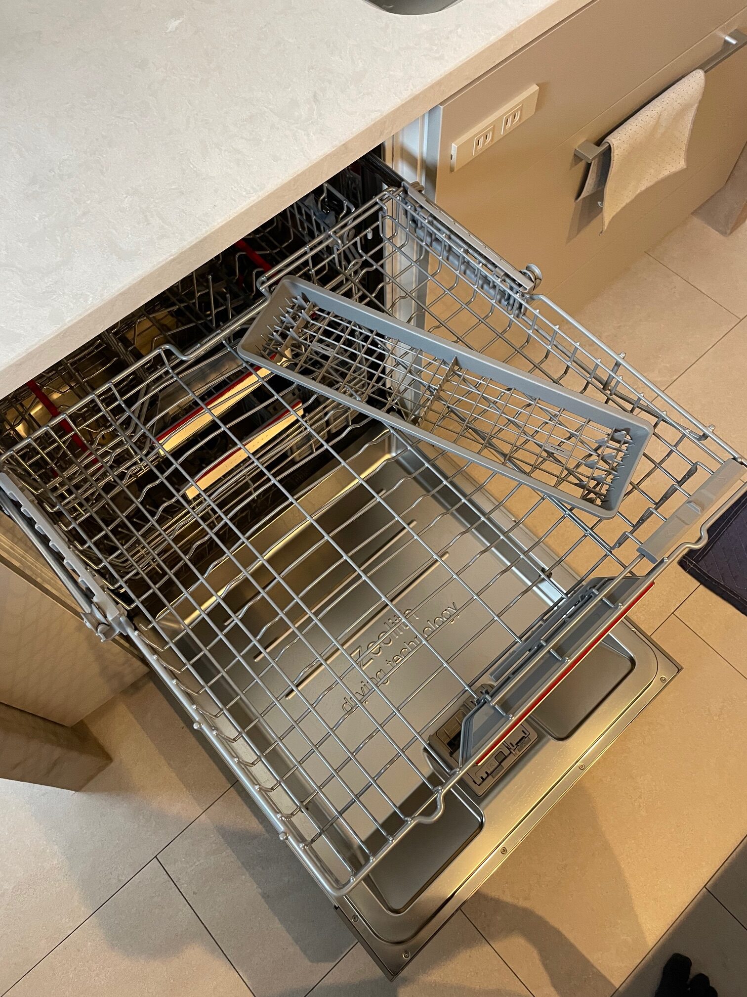 食洗器のカトラリートレイを引き出すと落ちてしまうとのこと。