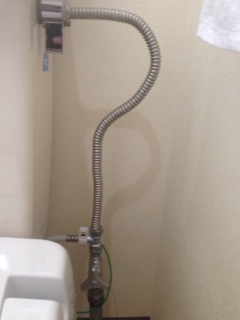手洗い管に付いていたホースを抑えながら再度レバーを引いてみると・・・プシャーーーーーーーーーーー!