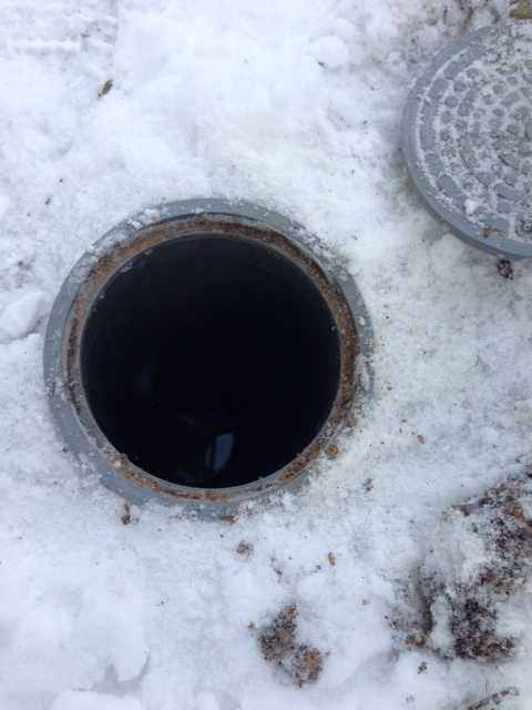 トイレで詰まっている可能性は薄かったので、雪を掘り起こして排水管を調査することにしました。