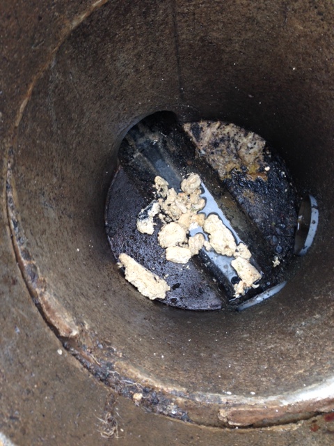すると、盛大に水が溜まっていて、経路を調べてみると二つのトイレが合流しているマスでの詰まりでした。