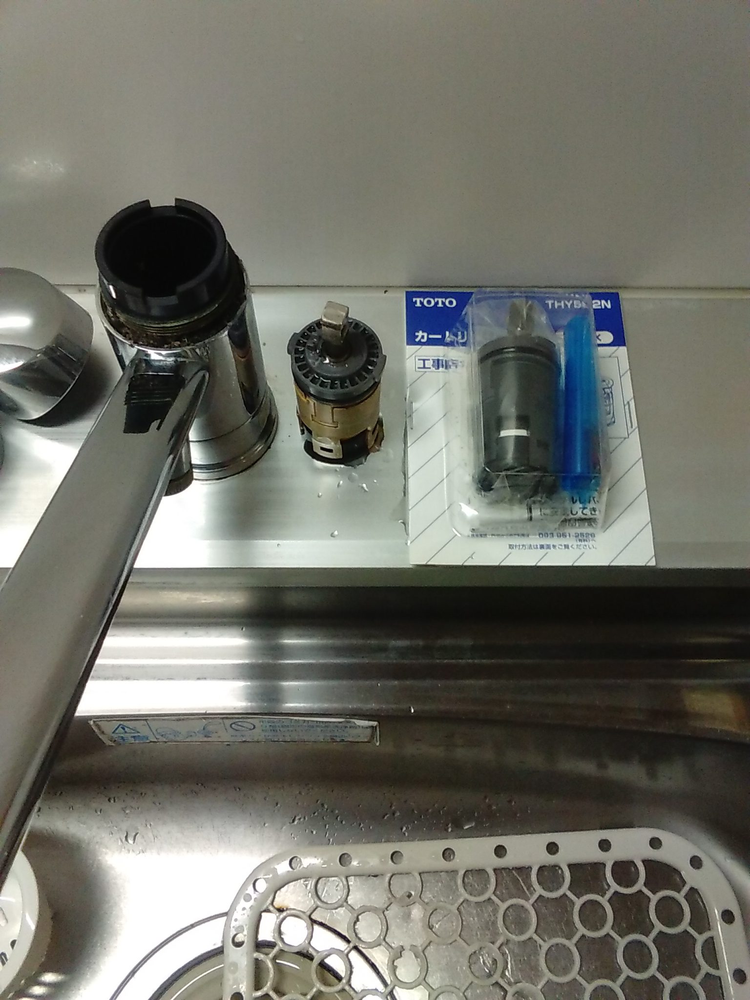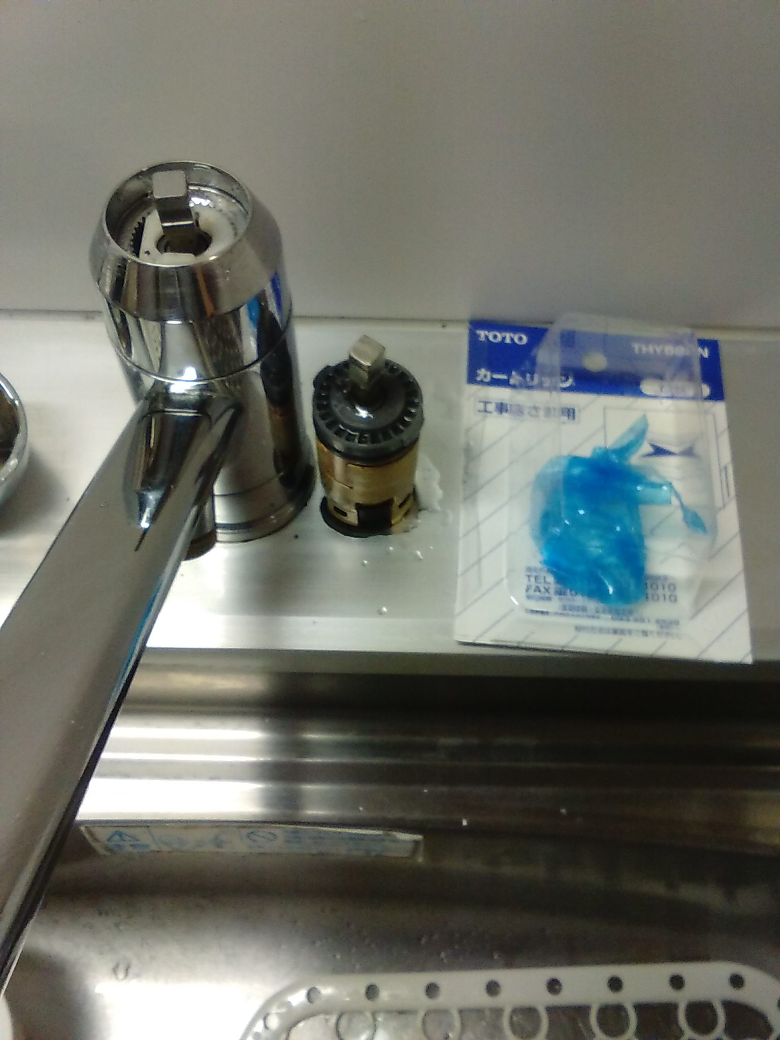 本日は台所蛇口を止めてもポタポタ水が止まらないとの点検依頼があり出動しました。台所のシングルレバー混合水栓を使用しており、この様な症状の場合は本体内部のカートリッジという部品の故障になります。お客様に料金提示して承諾をいただき部品交換をしました。ちょっとしたポタポタという音ですが、こちらの奥様はこの音でも気になって寝れない時があったとのことです。修理が完了して大変喜んで頂きました。