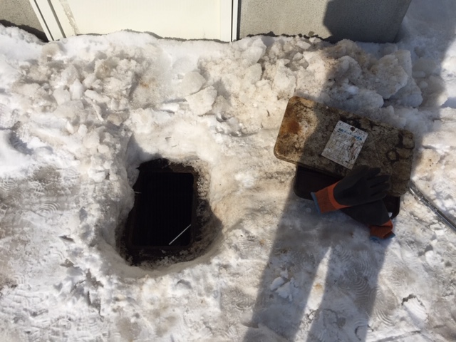 そこで、地面に雪で埋まっている水道メーターボックスを探し、中を点検してみました。