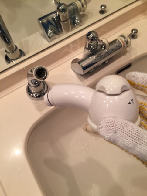 本日は、管理会社様からの依頼で、売買物件で販売したての中古マンションの入居者様から洗面蛇口の頭の切り替え部から水漏れしているので見に行ってほしいとの依頼でした。早速訪問し現状を確認してみると劣化で水漏れしている状況でしたのでヘッド部の交換をすることになり急遽、部品を取りにメーカーまで走り交換致しました。お客様も迅速な対応でお喜びでした。!(^^)!