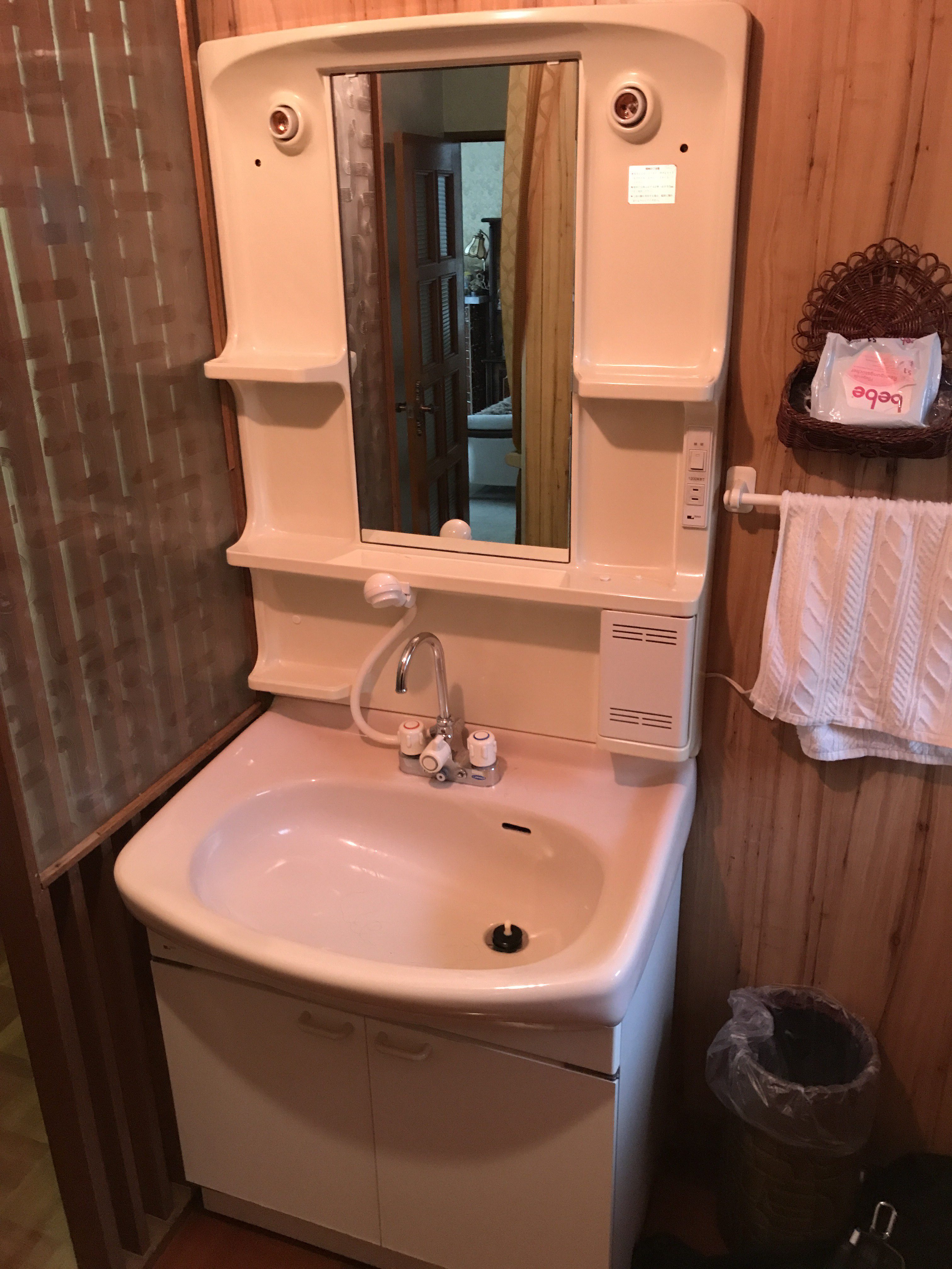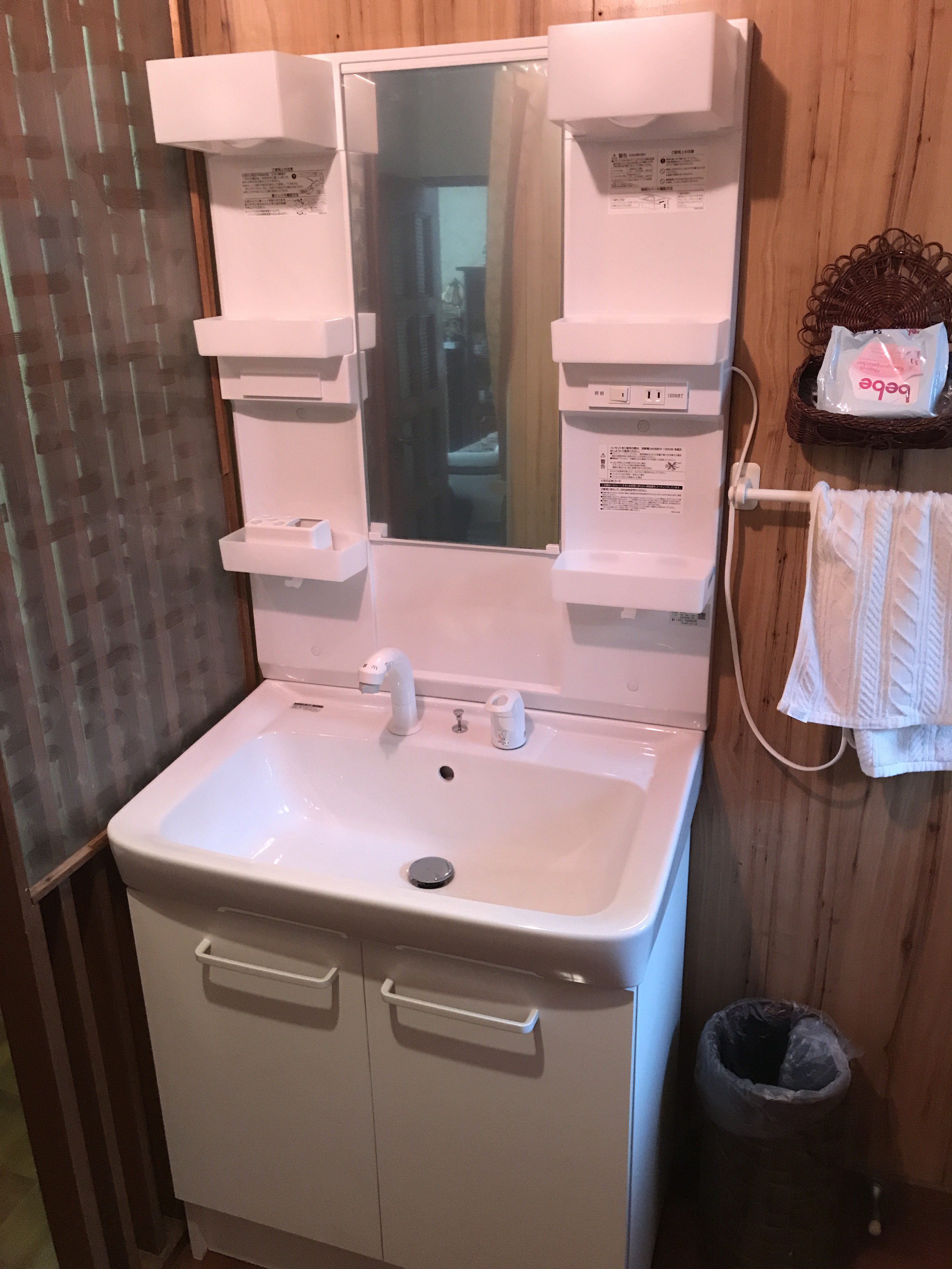 本日は洗面化粧台の交換をしました。昨日に水道凍結のご依頼があり、お伺いしたお客様で解氷作業後に洗面蛇口から水が噴き出てきました。蛇口だけでも交換出来ないかと色々調べましたが、イナックスの古い洗面化粧台のために各メーカーの新しい蛇口が洗面化粧台に合わないことが分かり、洗面化粧台ごとの交換になりました。今年は何十年も水抜きしたことがない戸建のお客様が凍結していまうケースが多数ありますので皆さんもお気を付け下さい!
