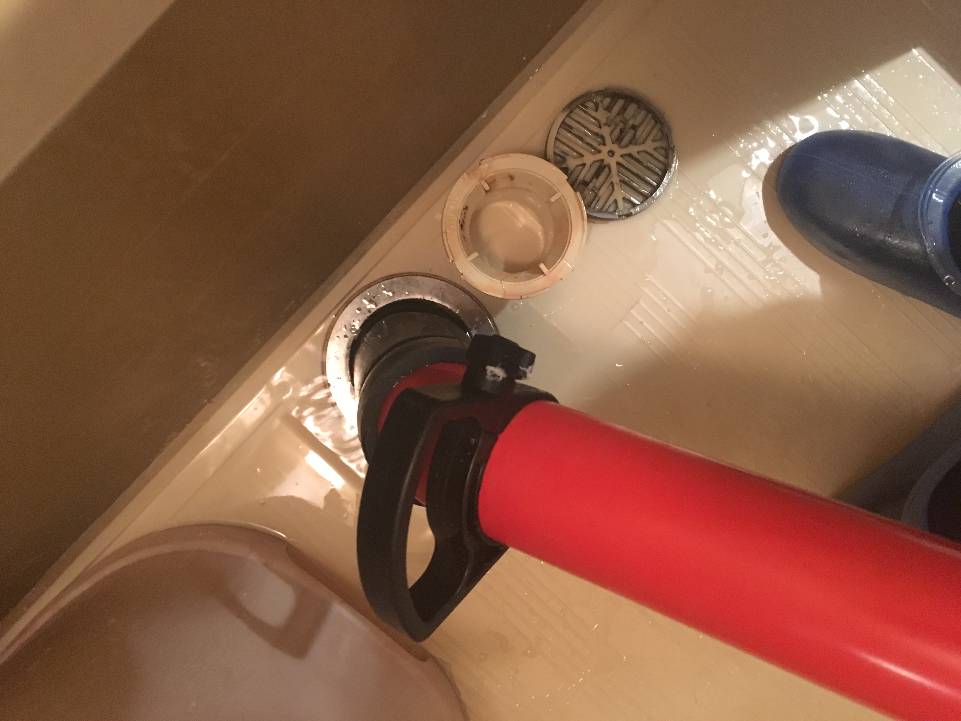 本日は提携会社からの依頼で浴室の排水が詰まっているとのご入電を頂きました、お伺いさせて頂くと浴室の排水が一切引かない状態でした、作業としては高圧ポンプを使い排水に対して圧をかけて詰まりを押し出す作業です。作業後水が引くことを確認したら専用の薬品を使い薬品洗浄を行い作業完了です。