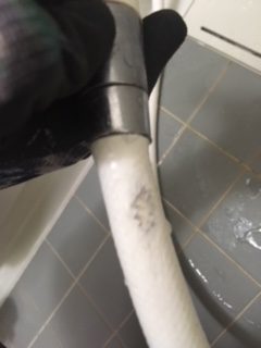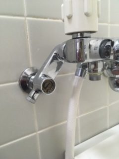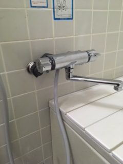 本日は浴室水栓の部品が無くなってしまい問題がないかどうか見て欲しいとのことです、お伺いさせていただくと、浴室の蛇口の止水栓部分の化粧キャップが取れて紛失してしまったとの事です、それとは別にシャワーホースに傷がありそこから水が漏れてくるとの事です、化粧キャップとシャワーホース共に交換して欲しいとの事ですが20年以上お使いで部品の供給がなく難しく純正品ではないシャワーホースや止水栓部の交換は出来ると説明した所本体毎交換して欲しいとの事でした。お客様にどのタイプの蛇口がいいか打ち合わせをして本体が決まり交換して完了です。年数が経っていると本体交換も中々難しいですね(;´Д`)