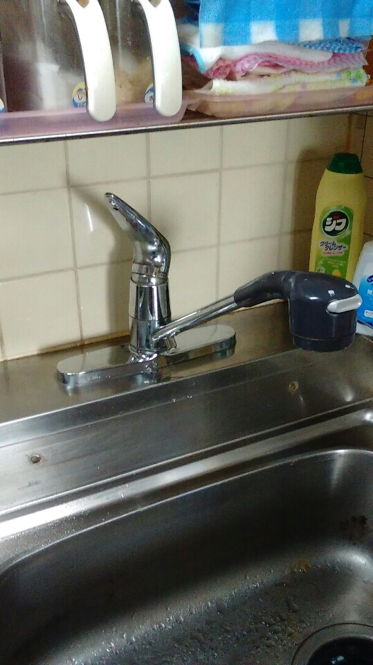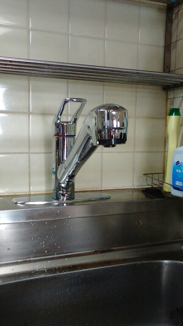今日は台所の蛇口から水が漏れるとの事で呼ばれました。拝見してみると蛇口本体から水が漏れてて、お話しを聞くともう20年使ってるとの事。