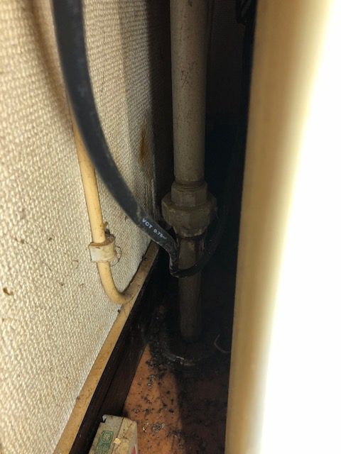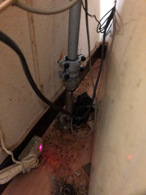 本日は提携会社からのご依頼で部屋の床が気付いたら濡れているとの事でご依頼頂きました、お伺いさせて頂くと床が濡れてくる周辺に配管が密集されており。確認した所鉄管の一部から水が漏れている状態でした。一点からの水漏れだった為作業としては配管自体は触らず圧着ソケットといわれる部品での修理となりました。圧着ソケット装着後水漏れが無い事を確認して作業完了です。