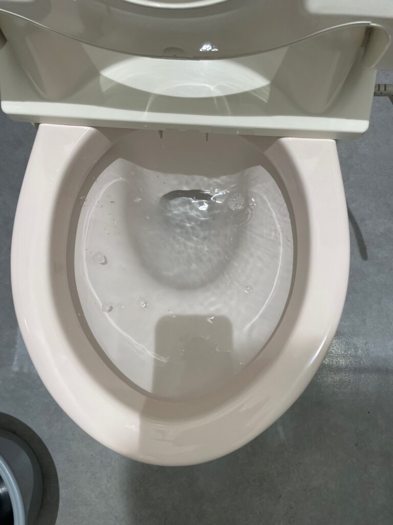 トイレが詰まっており便器の淵まで水が上がってきてしまっている状態でした。