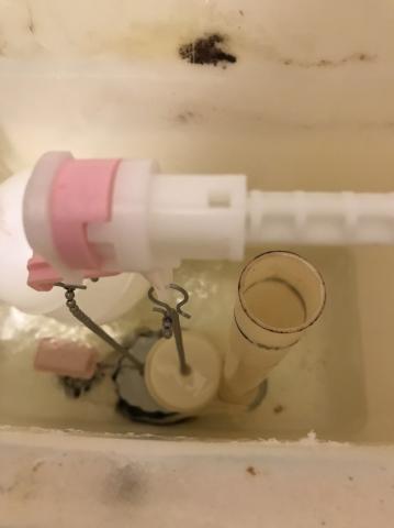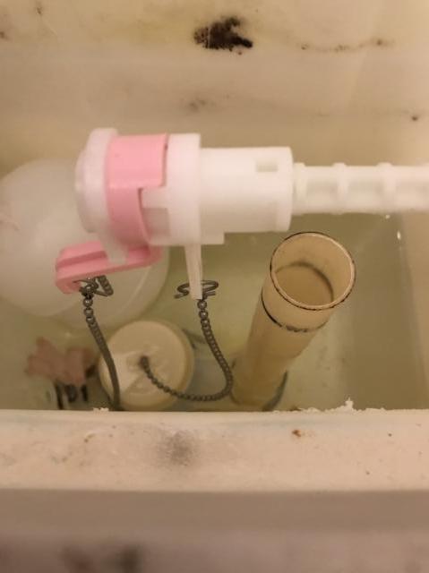 原因はレバーの鎖がタンクの内径に引っかかっており、鎖の位置を前後逆にすることで症状は改善しました。