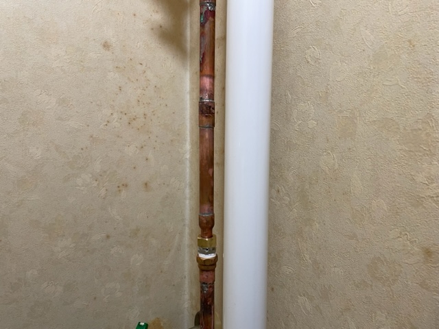 配管の一部からピンホールしてましたので、銅管溶接作業にて改善しました。