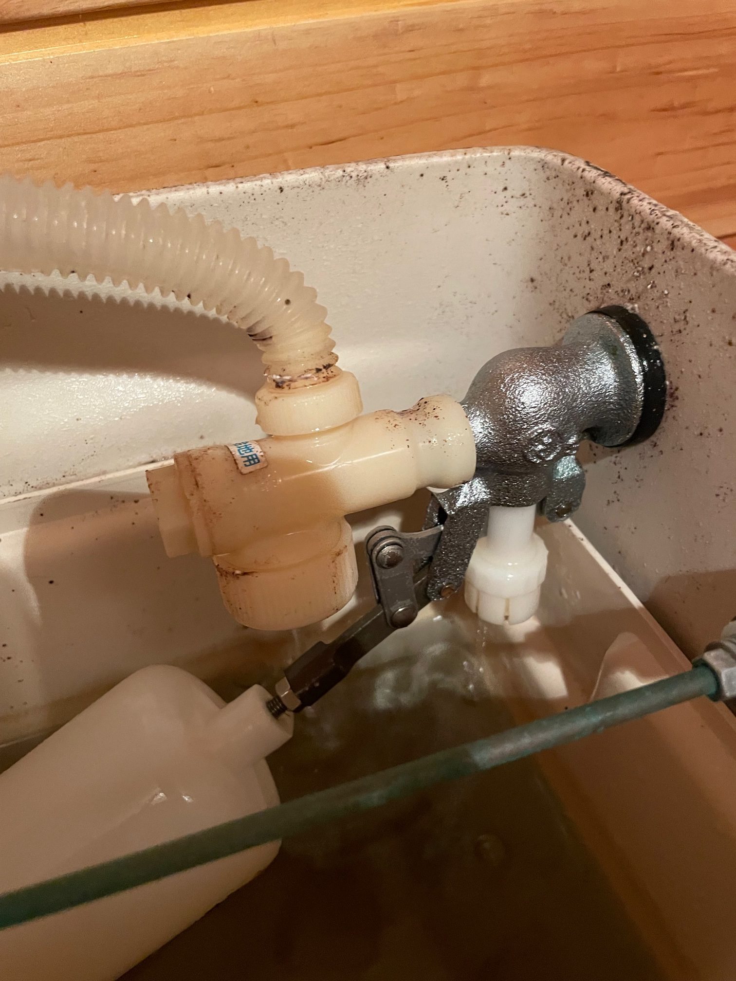 調査するとトイレタンク内のボールタップと呼ばれる部品が故障しており