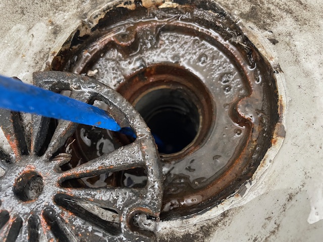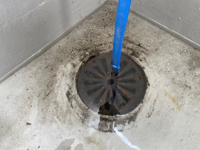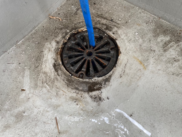 管理会社様からの依頼で、ベランダに溜まった水が全然引かないとのことでした。