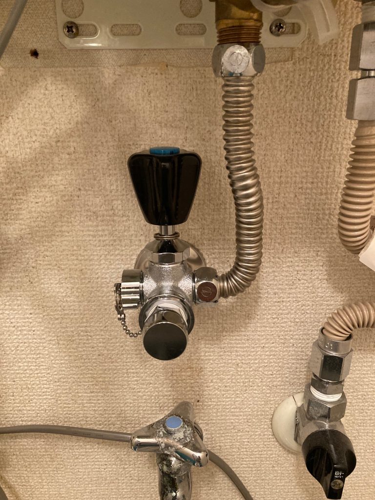 水漏れ箇所を確認すると、その分岐する部品の使用されていない経路のプラグからの水漏れでした。