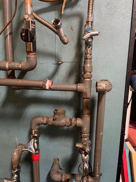 古い鉄管を使用しており、地獄配管と呼ばれる組み方になっていたため、配管の一部を切除して