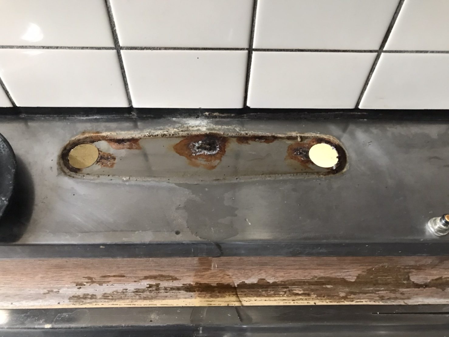 蛇口を使用すると台座の根本あたりから水漏れしてくるとのことでしたが、見た目からしてかなり劣化しています。