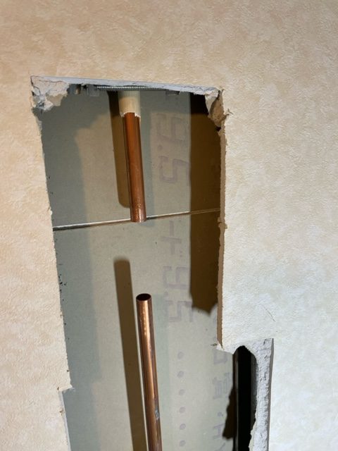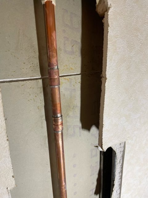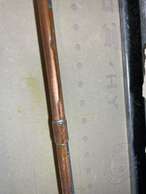 一旦ピンホールで穴の開いている箇所を切除し、再度新しい銅管部材で溶接して症状は改善しました。