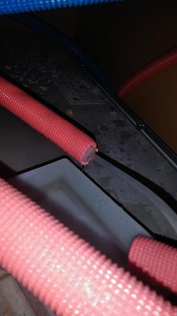 天井を覗いてみると、比較的新しい家に使用されている樹脂製の水道管が凍っていました。