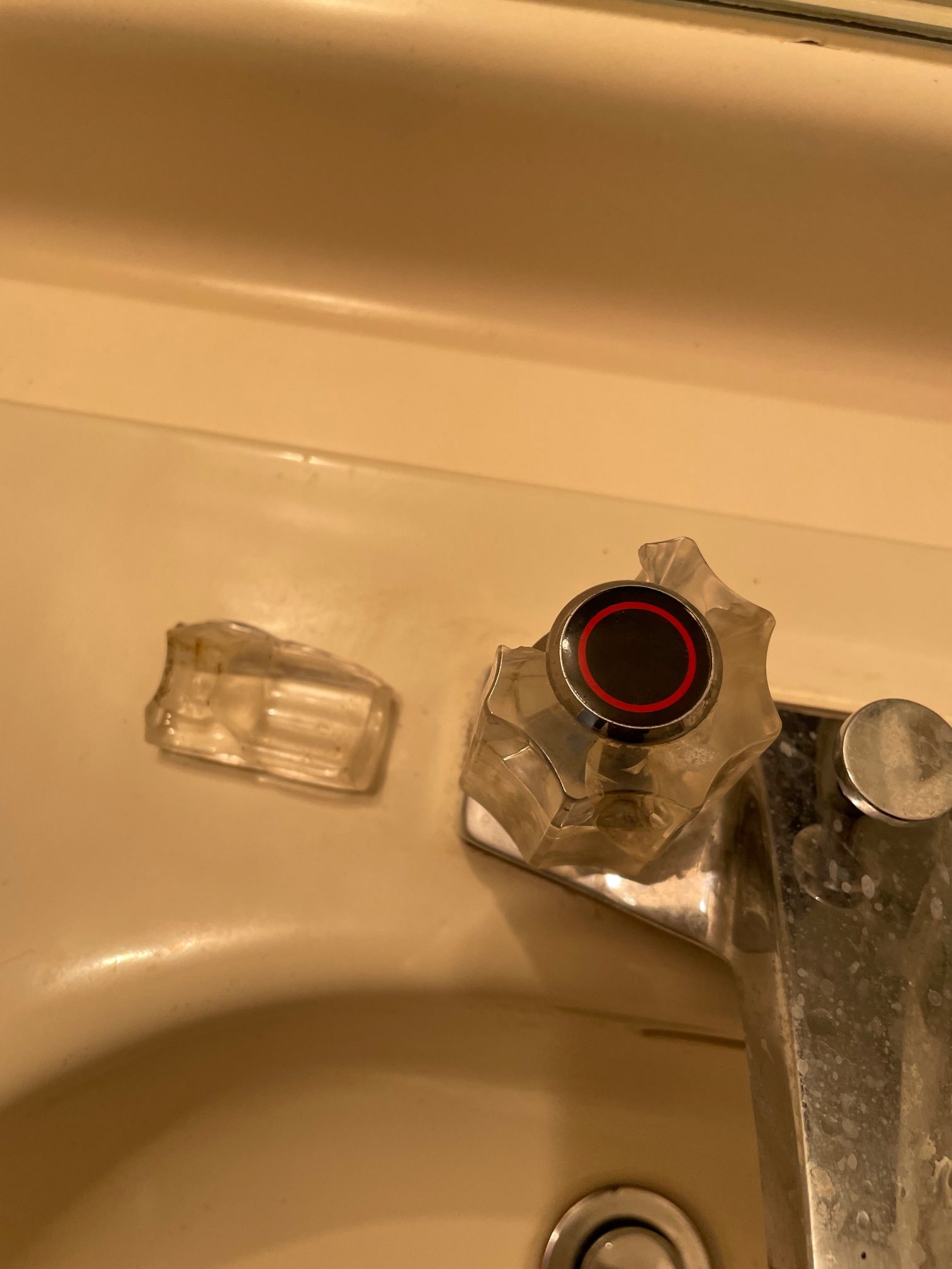 お湯側のハンドルの一部が欠けてしまい、回して回せないことはないですが若干切れてしまいそうな欠け方でした。