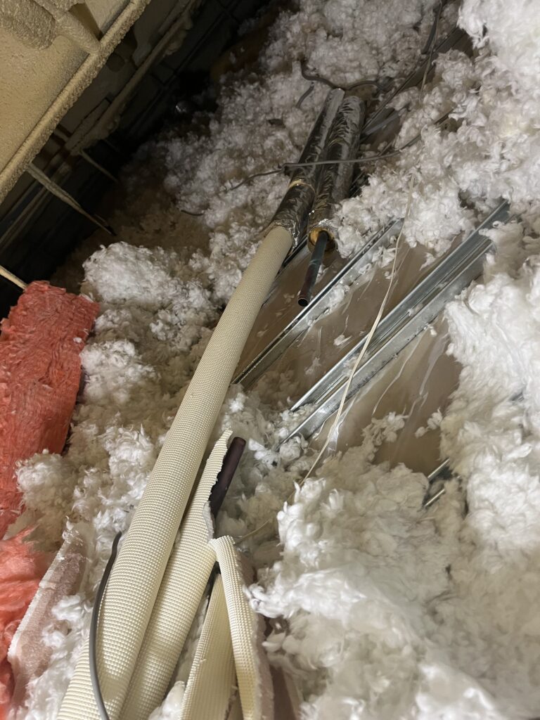 天井裏給水管ピンホールしていたため銅管補修し改善しました。