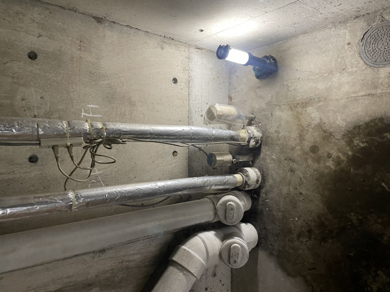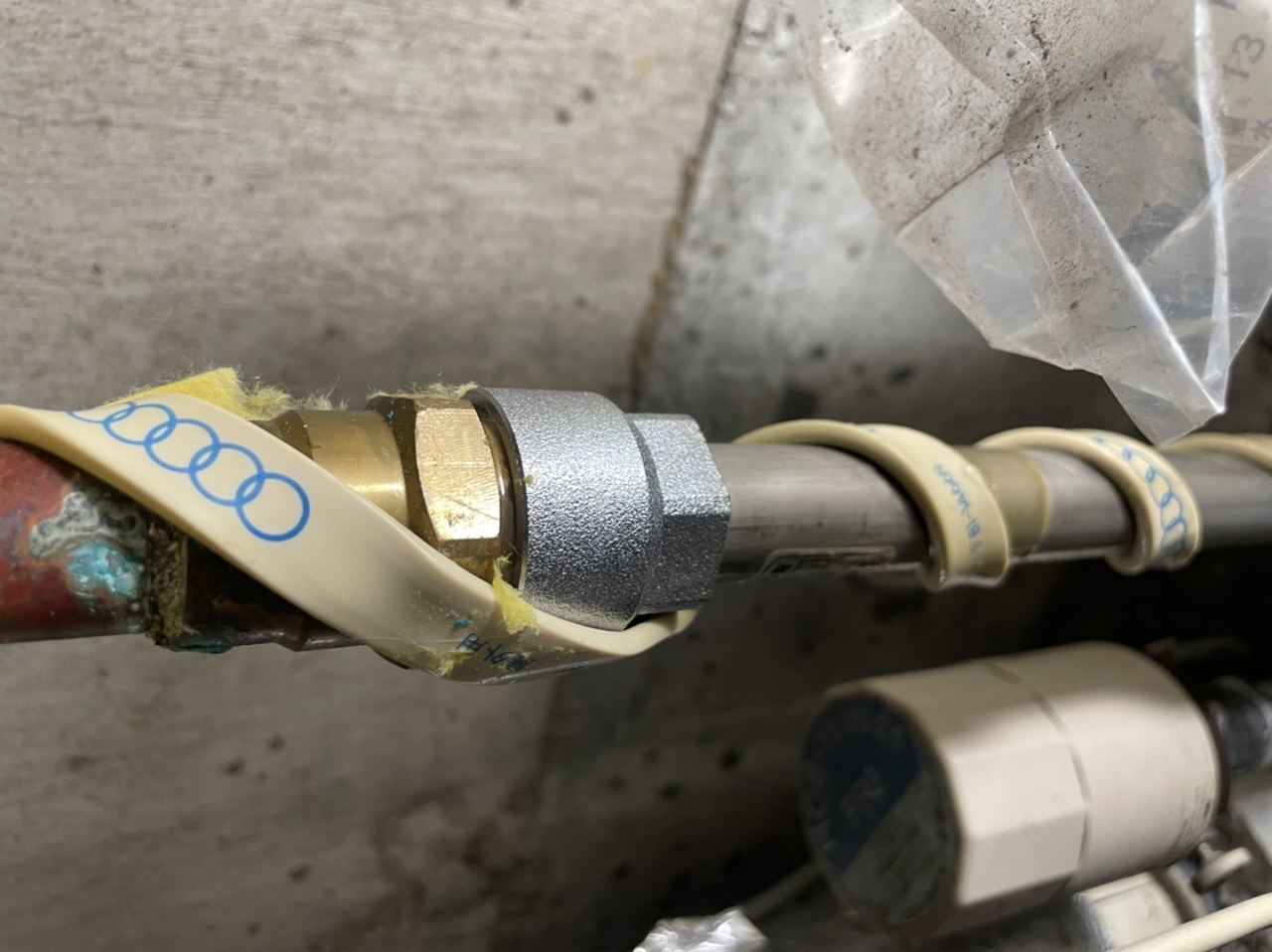 管理会社より、南区にお住いのお客様の、車庫の中の給水管から水が漏れてくるとご依頼がありました