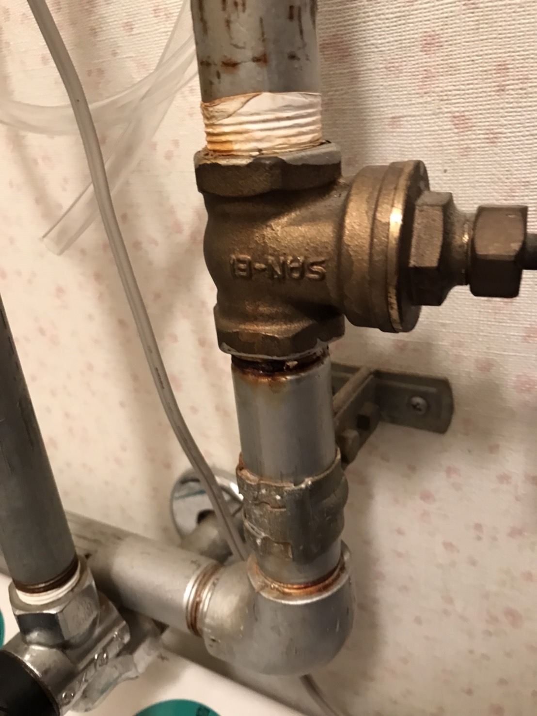 その箇所には昔ながらの止水栓が取り付けられており、その前後の配管の繋ぎ目はサビで腐食していました。