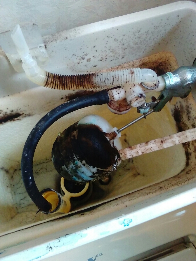 水量を調節する部分とタンクの水を抑えるゴム玉が劣化して水漏れしていました。お客様はトイレ交換になるのかなと思っていたらしく