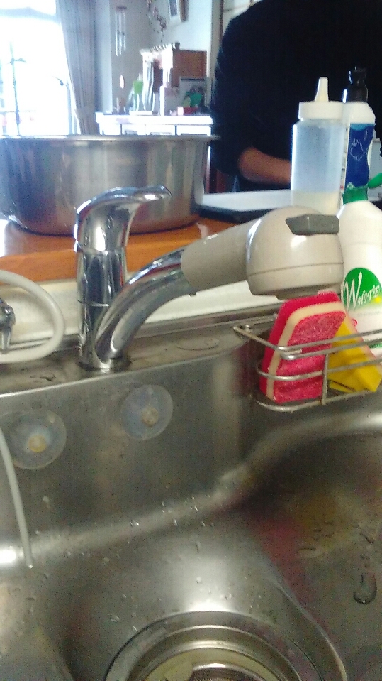 が濡れています。よくみると台所のシャワーホースから水漏れしていて経年劣化によるものです。話を