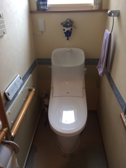 本日は、前に訪問しトイレ交換の見積もりし、ご注文いただいていたトイレが昨日入荷しましたので本日交換工事を致しました。以前の訪問のきっかけは、トイレの床が濡れるので見てほしいとの依頼で訪問し各種点検してみるとシャワートイレからの水漏れと判明!しかもシャワートイレ使用時のみに症状が出る感じでした。20年以上使用ですので、シャワートイレの交換を、ご提案させていただいたのですが、「どうせなら、思い切ってトイレ一式交換しようか」との事で見積もりしご注文頂きました。(^^)/ 選んでいただいたトイレは「LIXIL製 シャワートイレ一体型トイレ」 このトイレは、超節水型で、エコですし汚れが付着しずらく見た目にスマートなトイレです。結構、人気があります!!暑い中、汗だくになりつつも無事交換工事が終わりました。お客様も大変今風なトイレに変わり大喜びでした!!