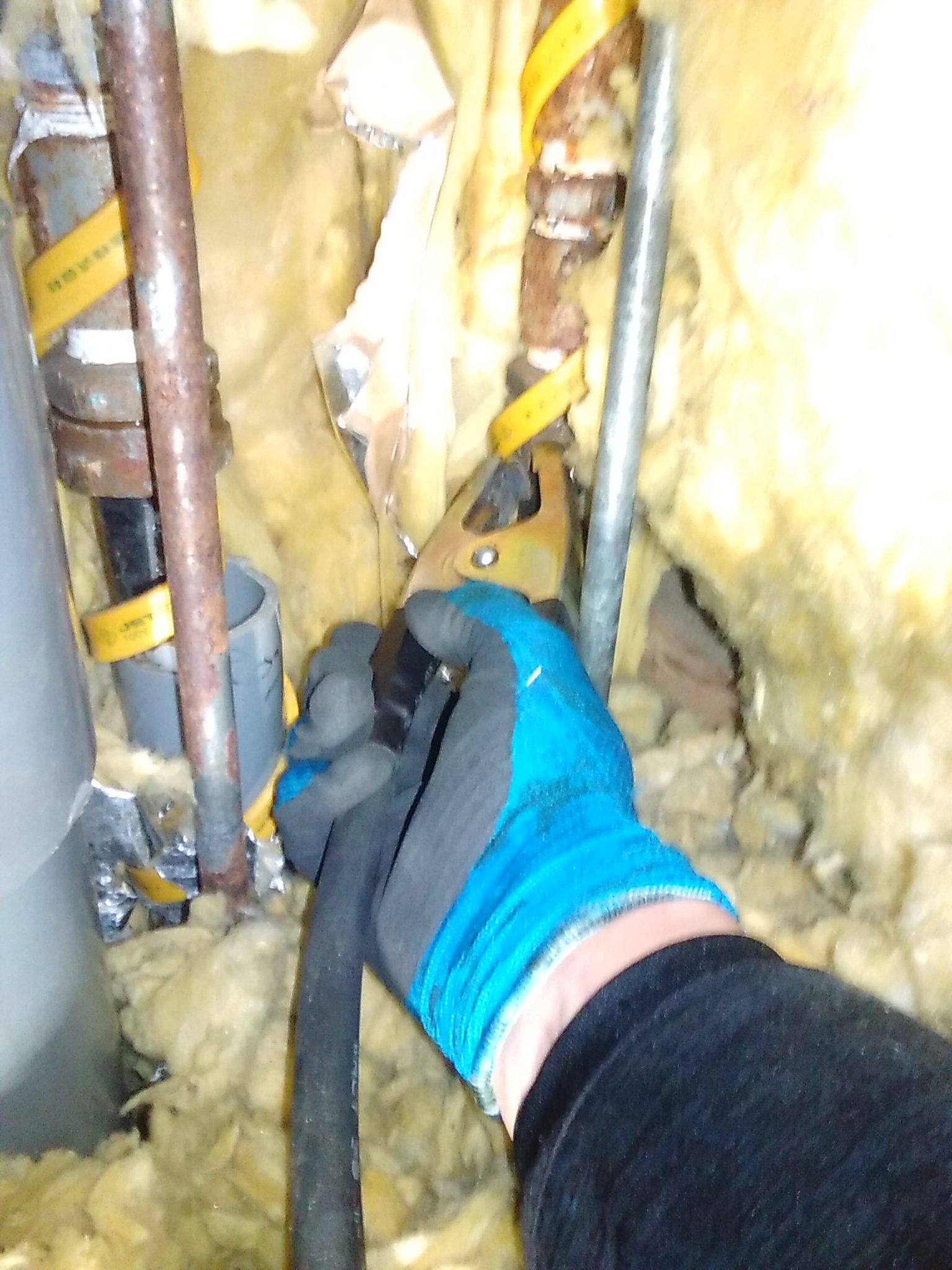 本日は提携先の管理会社からの依頼で賃貸物件の凍結作業依頼を頂きました、お伺いさせて頂くと全ての蛇口から水が出ない状態でした。お客様に聞くと水抜きをせず外出して帰って来たら出なかったとの事です。作業としては水道管が銅管だったので電気解氷です。部屋の下にあるパイプスペースから部屋にかけて電気解氷の機械を当てて水が出る事を確認して作業完了です。