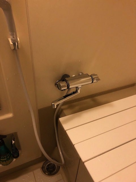 本日は浴室水栓の水漏れとの事でご依頼頂きました、お伺いするとハンドルで止めているはずなのに水が少し出ている状態でした。部品交換も出来るのですが本体交換ご希望との事で本体交換となりました、作業としてはまず水抜き栓で水を止めて付いている浴室水栓を取り外して新しい浴室水栓を取り付けて通水して水漏れが無い事を確認して完了です(^O^)/新しい浴室水栓はサーモ付きの為使いやすいとの事でとても喜ばれていました(*^-^*)