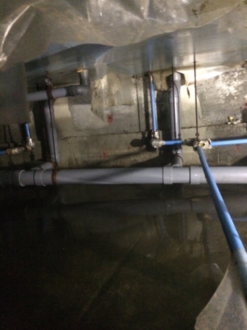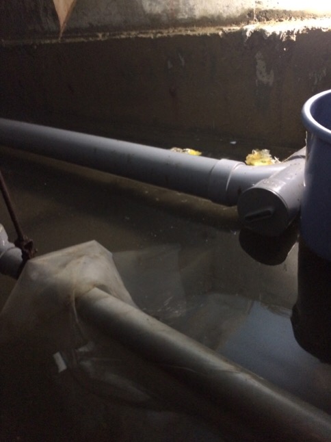 点検口を開いた限りでは綺麗でしたが、分岐の先から水が少量ずつ流れてきていたのでこのが原因でした。