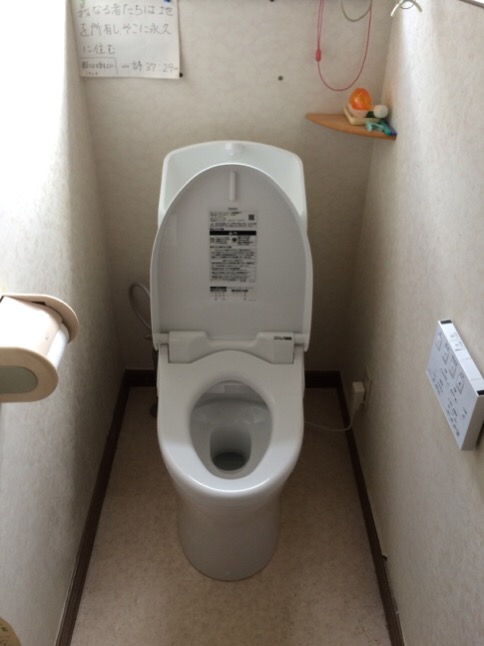 1階と2階のトイレを、TOTO製のウォッシュレット一体型トイレに交換致しました。以前のより節水タイプでして見た目にもスッキリしていてお客様も大変お喜びでした。