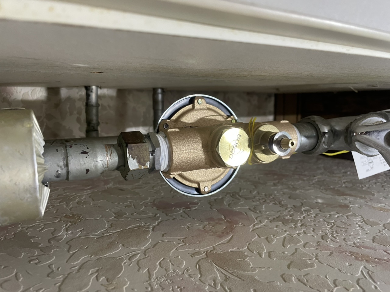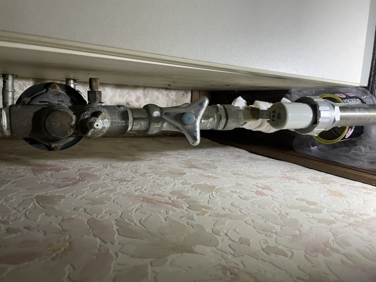 洗面横のステンレス立ち上がり管から水漏れとのことです。